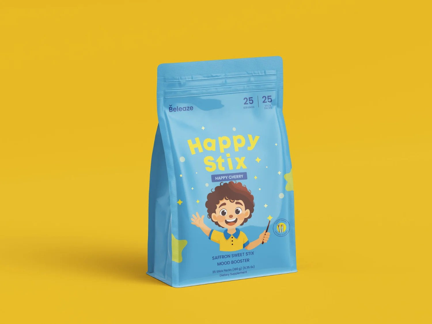 Happy Stix combines Saffron + GABA, two clinically backed nutrients proven to support emotional balance, focus, and a positive mindset — all in one easy, tasty daily stick.