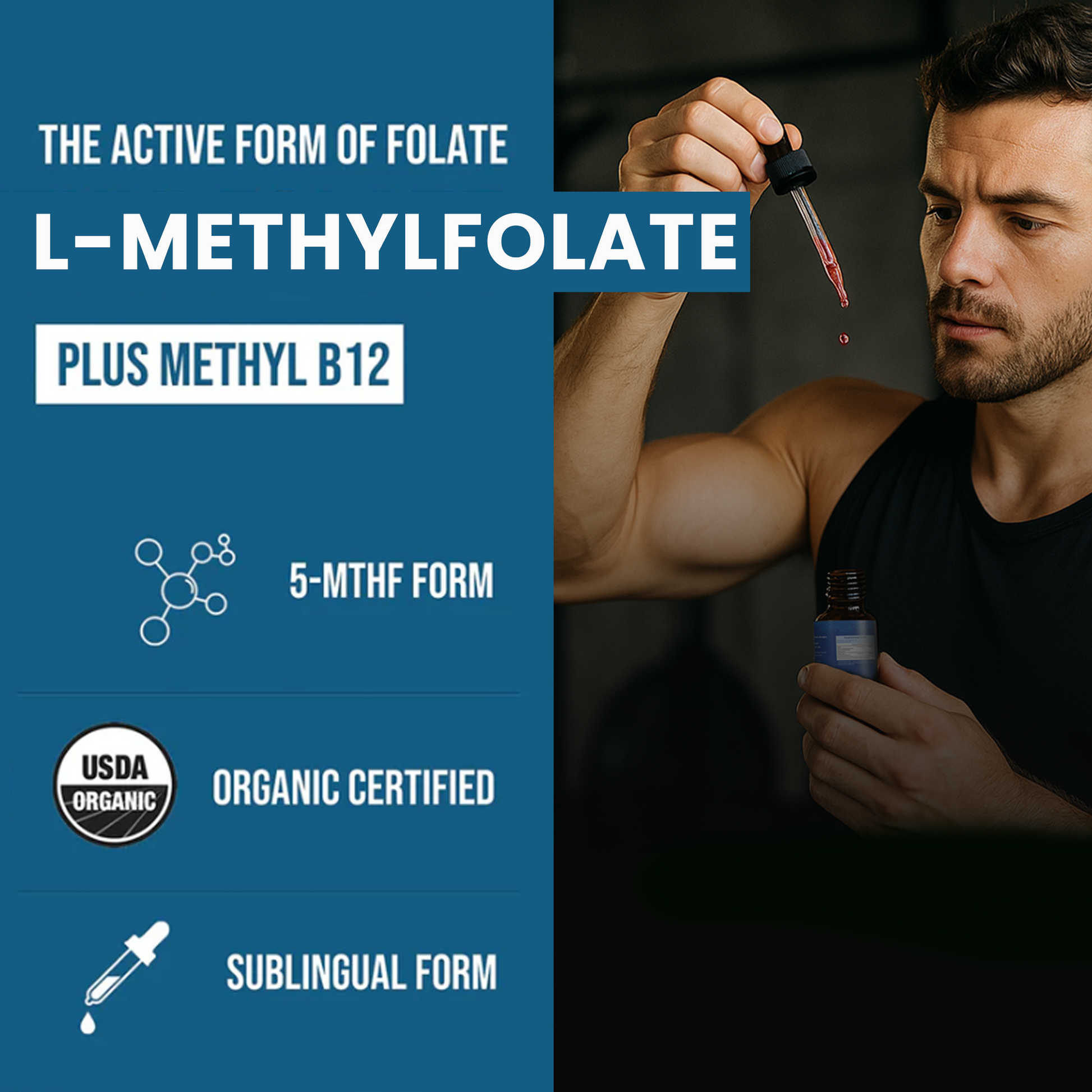 Commonly known as 5-MTHF, it helps your body produce folate to improve mood, focus, and cognitive function.